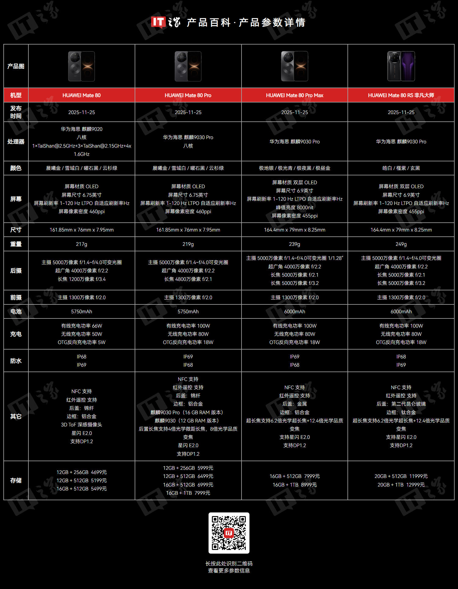 华为 Mate 80 系列手机重点参数配置差异如下: