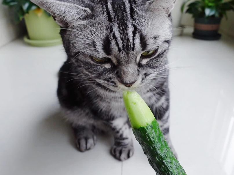 其实只要有准备,让猫咪看着自己的时候,拿出黄瓜的话,那么猫咪是不会感到害怕的,而且猫咪也特别的喜欢吃黄瓜。