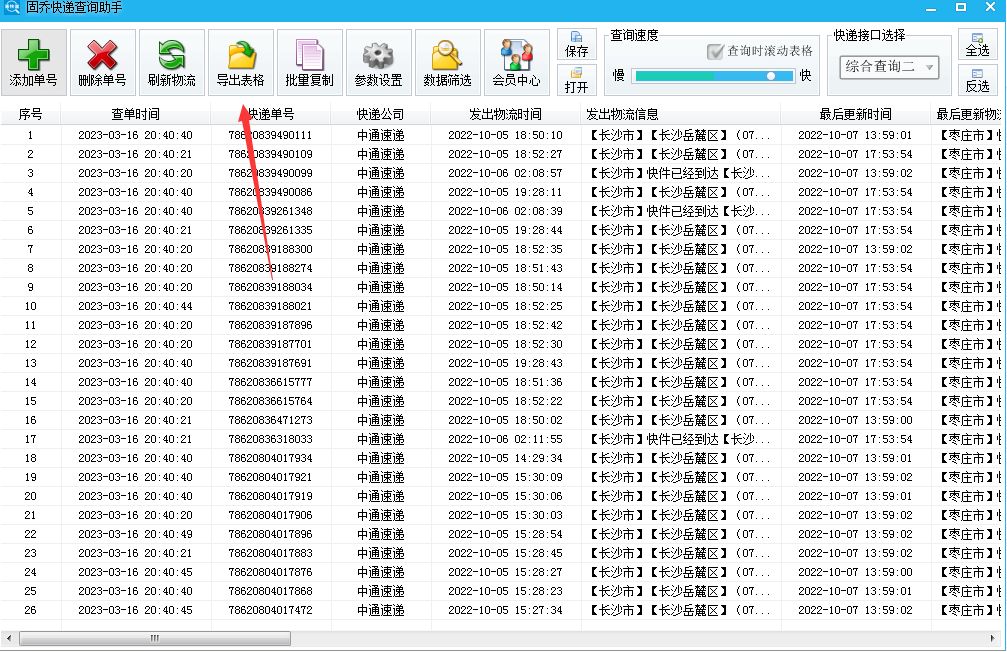 接下来软件就开始运行批量查询的工作了,如果大家想要将物流信息导出到本地,那么点击“导出表格”,就可以在本地电脑中查看了。