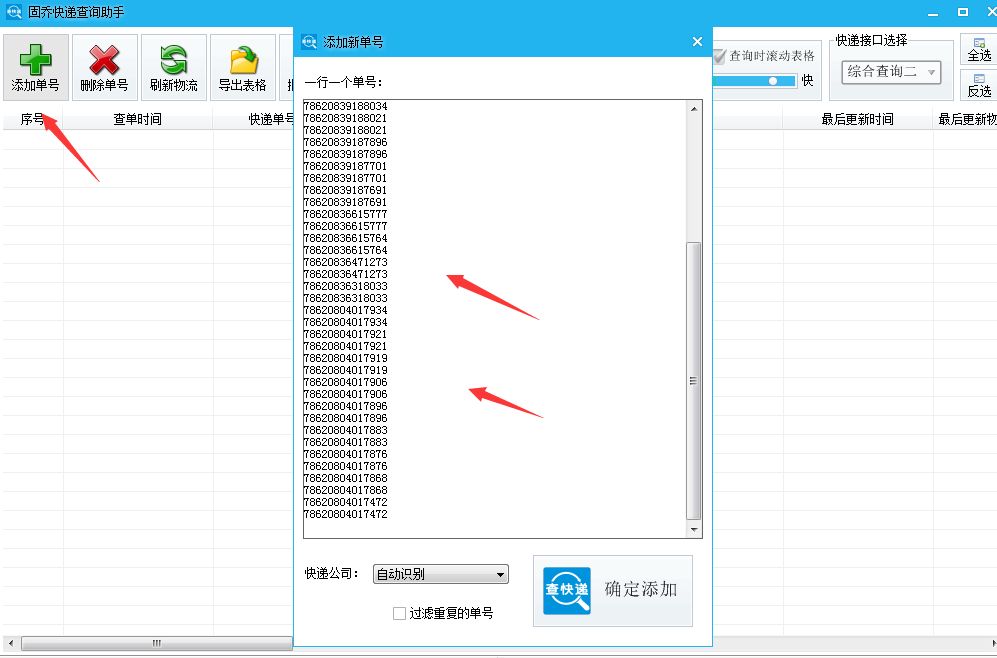 然后勾选文本框下方的“过滤重复的单号”,并点击“确定添加”。