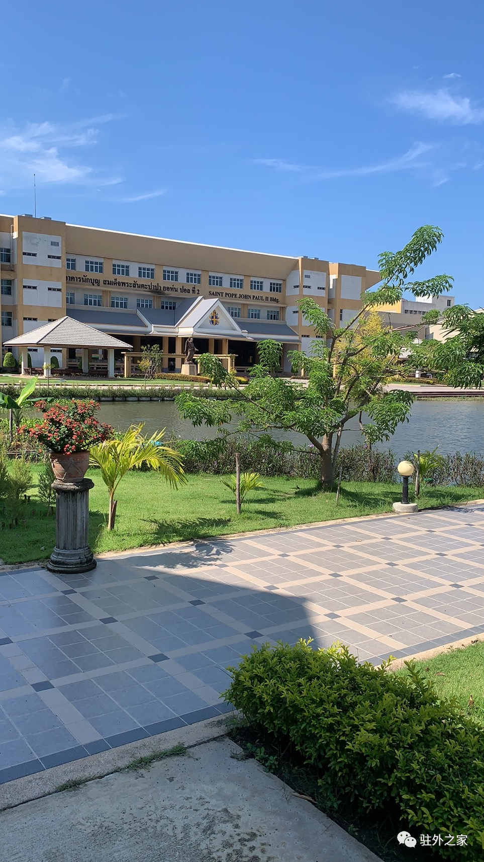 由于我之前行程都详细规划好了,所以一路无话,顺利抵达了曼谷,过了海关,学校的接站的老师早就在等候,开车直接送我到了学校,学校就在离曼谷36公里外的近郊,还算繁华,我顺利的入住了学校的外教单身公寓,独立卫浴,有空调,条件还算不错。