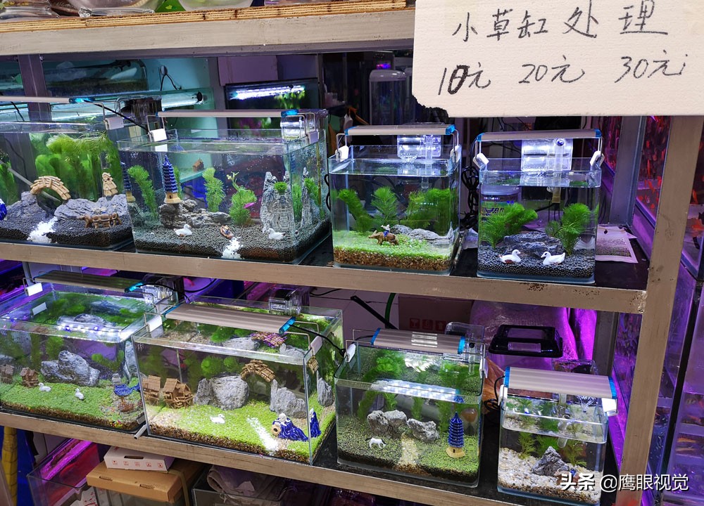 一家专门卖鱼缸的de水族馆处理小草缸,根据大小不等,小草缸的价格在10元、20元、30元yuan,比平时价格便宜了1倍还多。