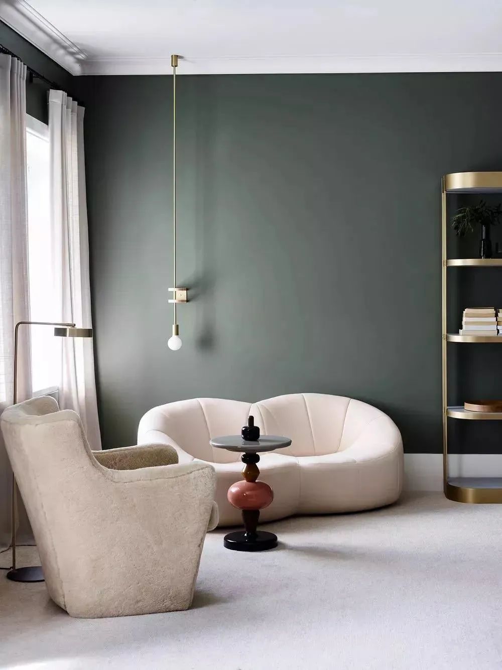 这种色调的饱和度很低,乍看之下有种脏脏的感觉,但是大面积地铺陈于家居空间,与其他色调搭配起来,反而比饱和度深的色彩看起来更有质感,让空间气质瞬间变得柔和优雅起来。