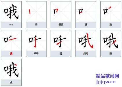 名称 竖、横折、横、横、横、竖、横折、撇、竖折/竖弯、横、